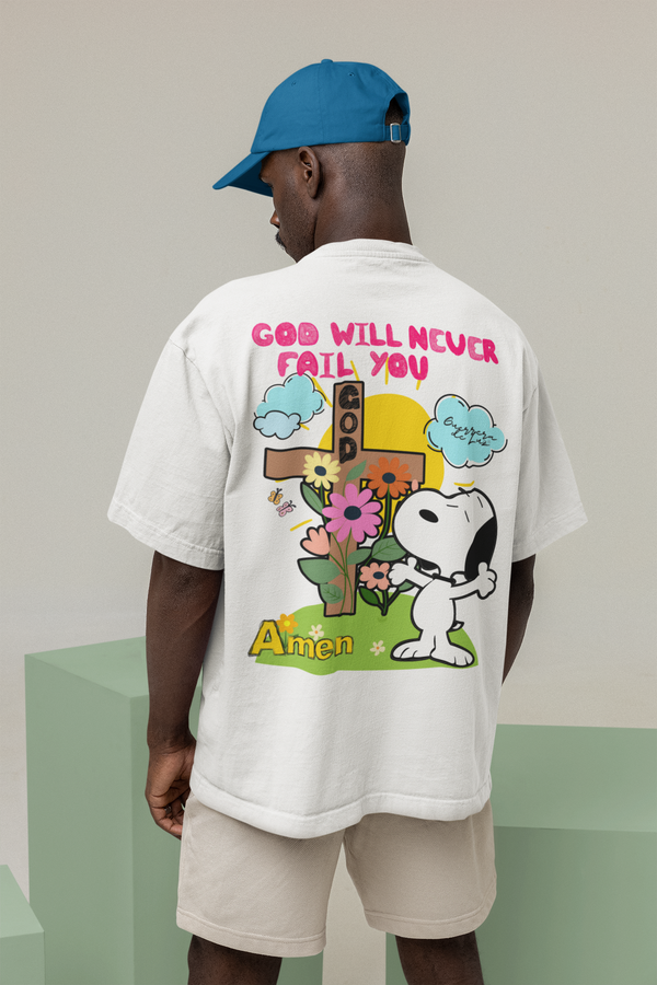 Confeccionada en algodón de alta calidad, esta camiseta es perfecta para quienes quieren vestir su fe con alegría. Su corte clásico y tela suave la hacen ideal para el día a día… o para cuando te dé por bailar con Snoopy al ritmo de un aleluya.